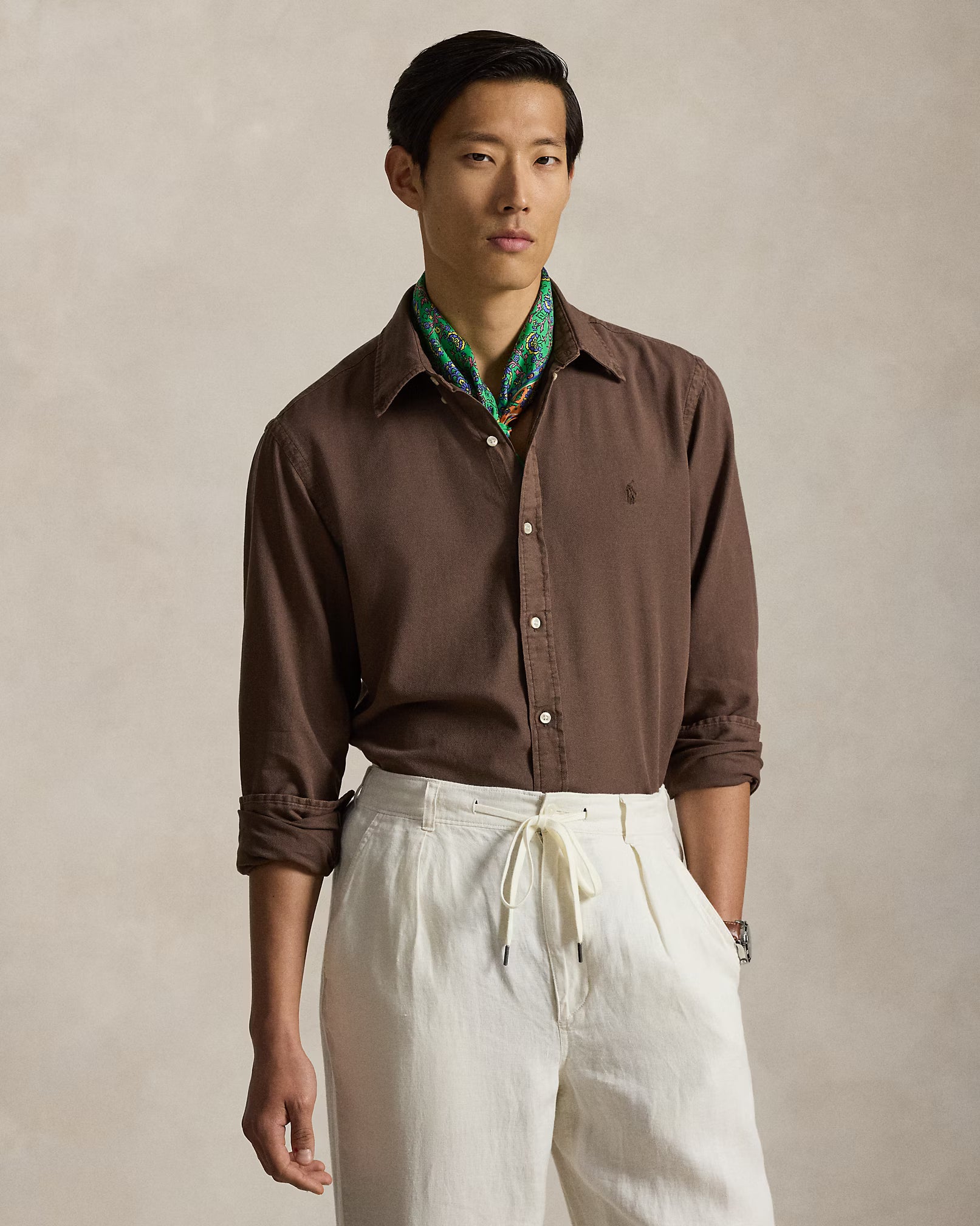RALPH LAUREN HOMBRE CAMISA M/L MARRON